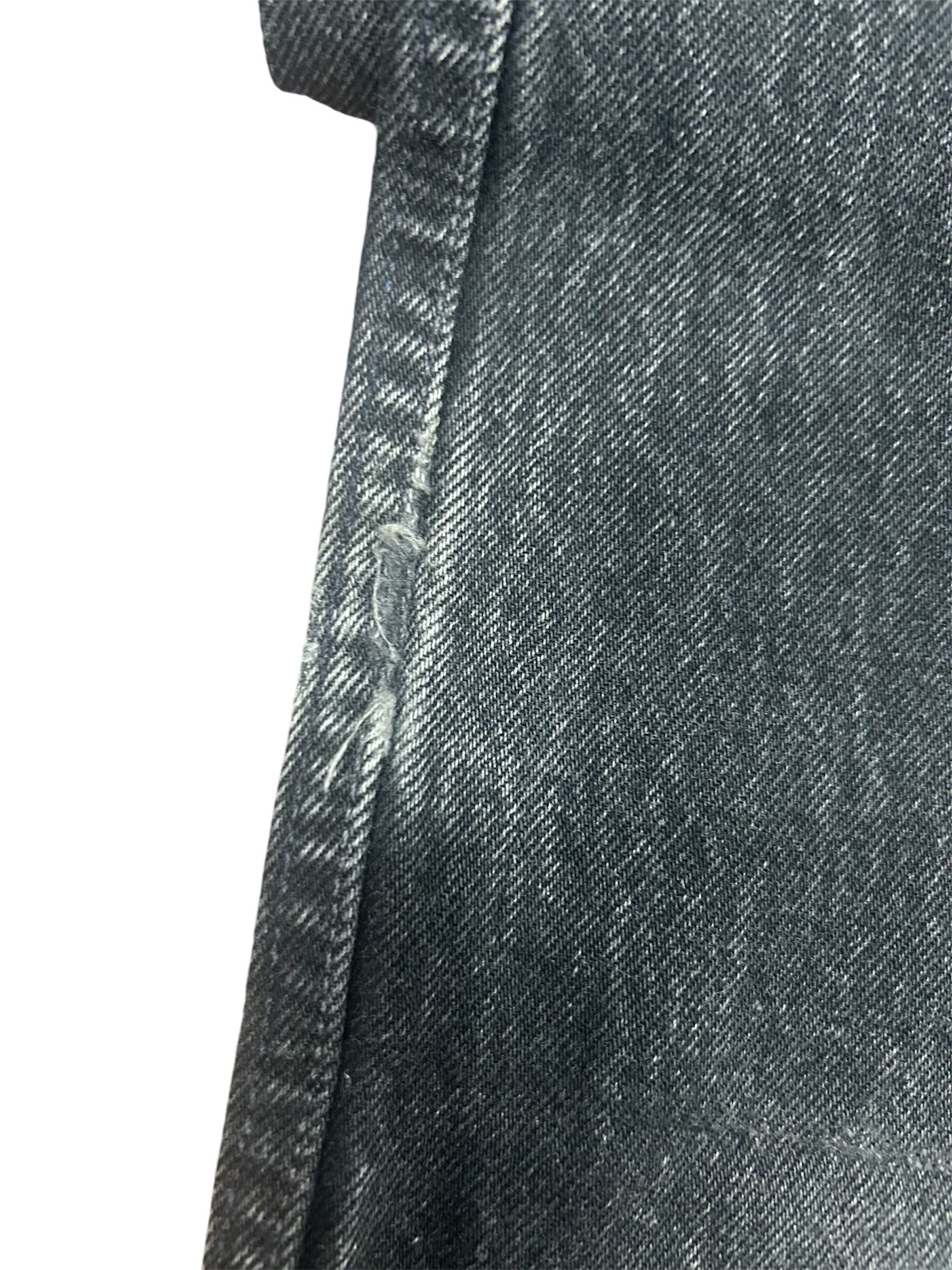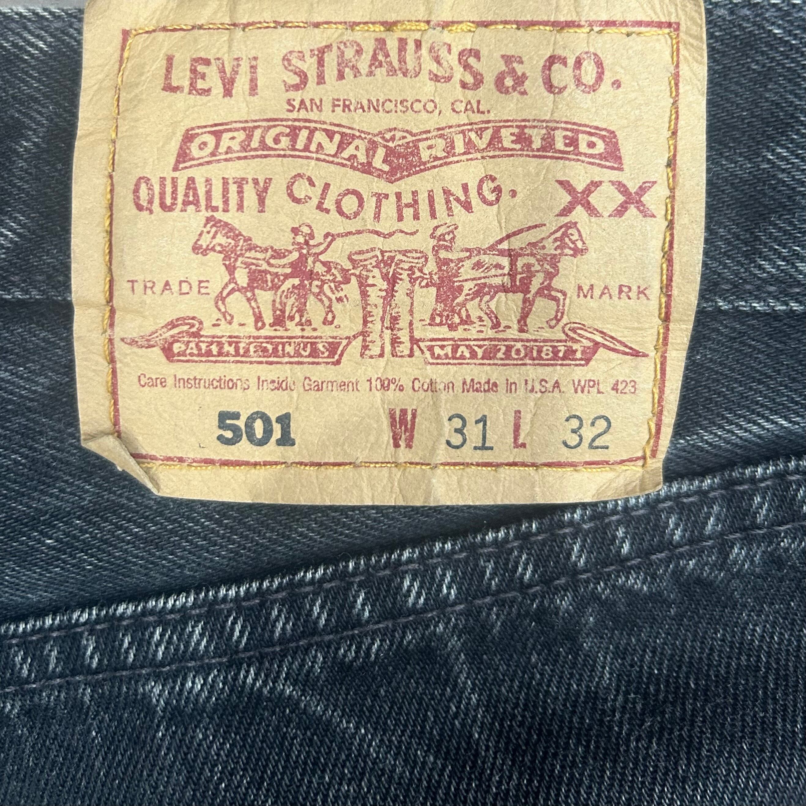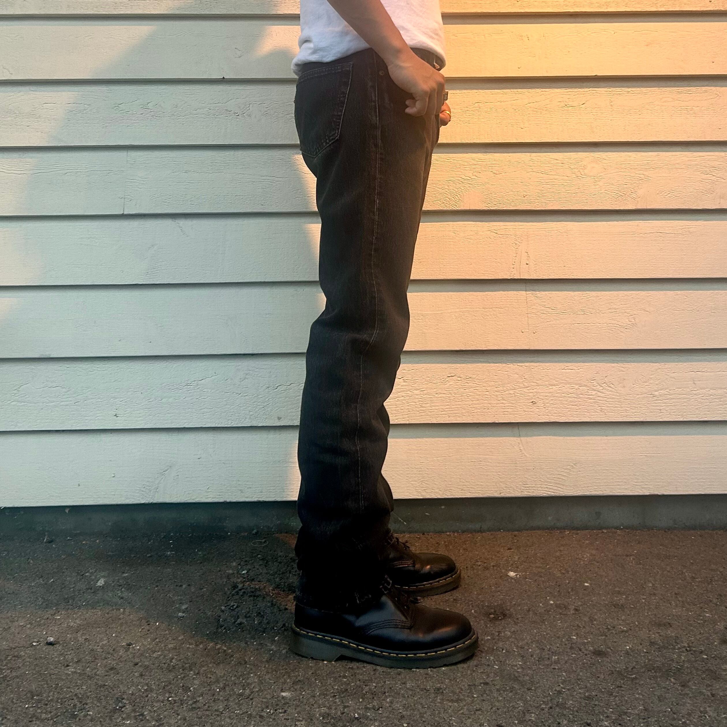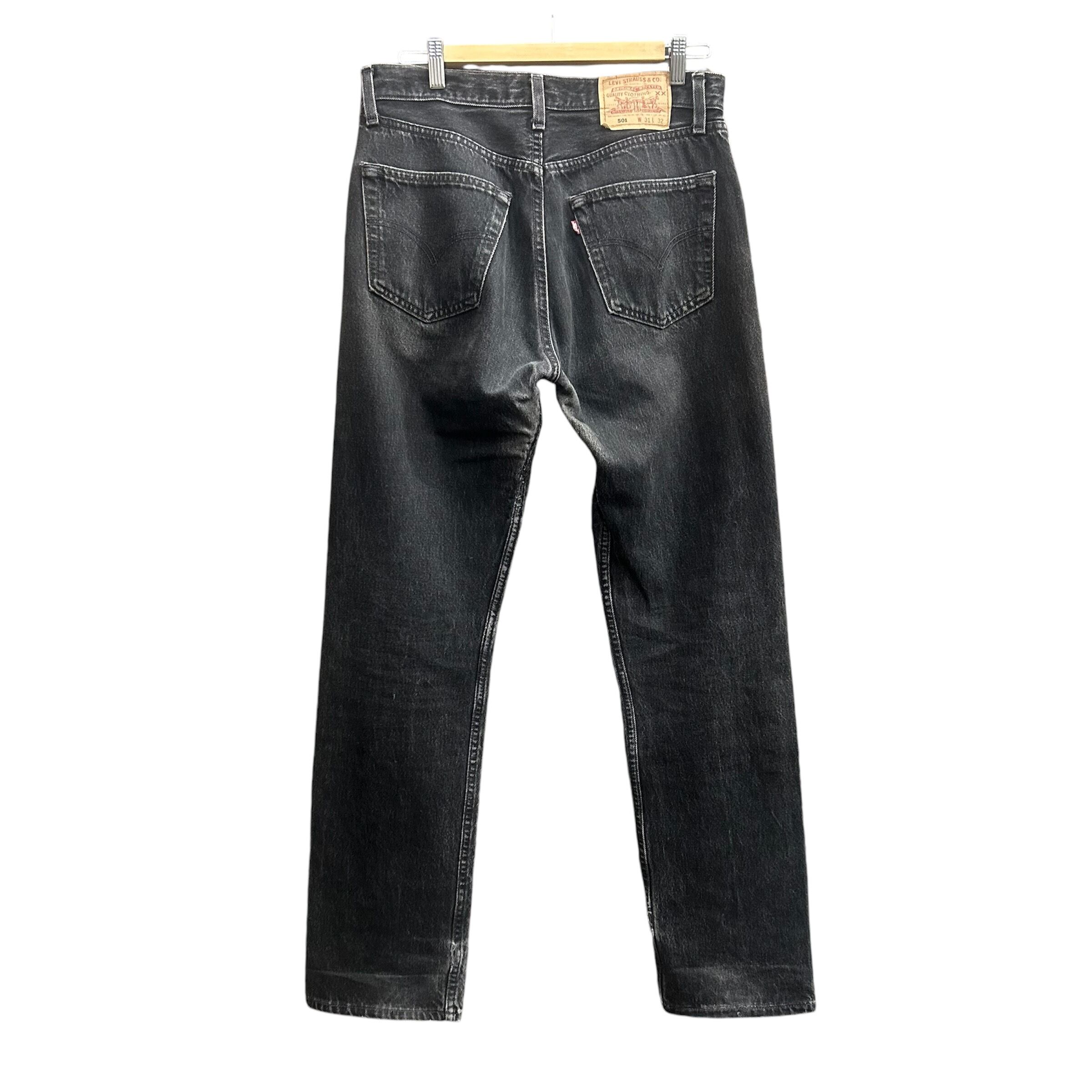 501の定番のストレートカットはカジュアルからフォーマルまで様々なスタイルに合わせやすく長年愛されている商品です。90年代のデザイン、ディテールはヴィンテージファッションのアクセントとして非常に魅力的であり、ブラックデニムはシックな印象を与える逸品となっております。