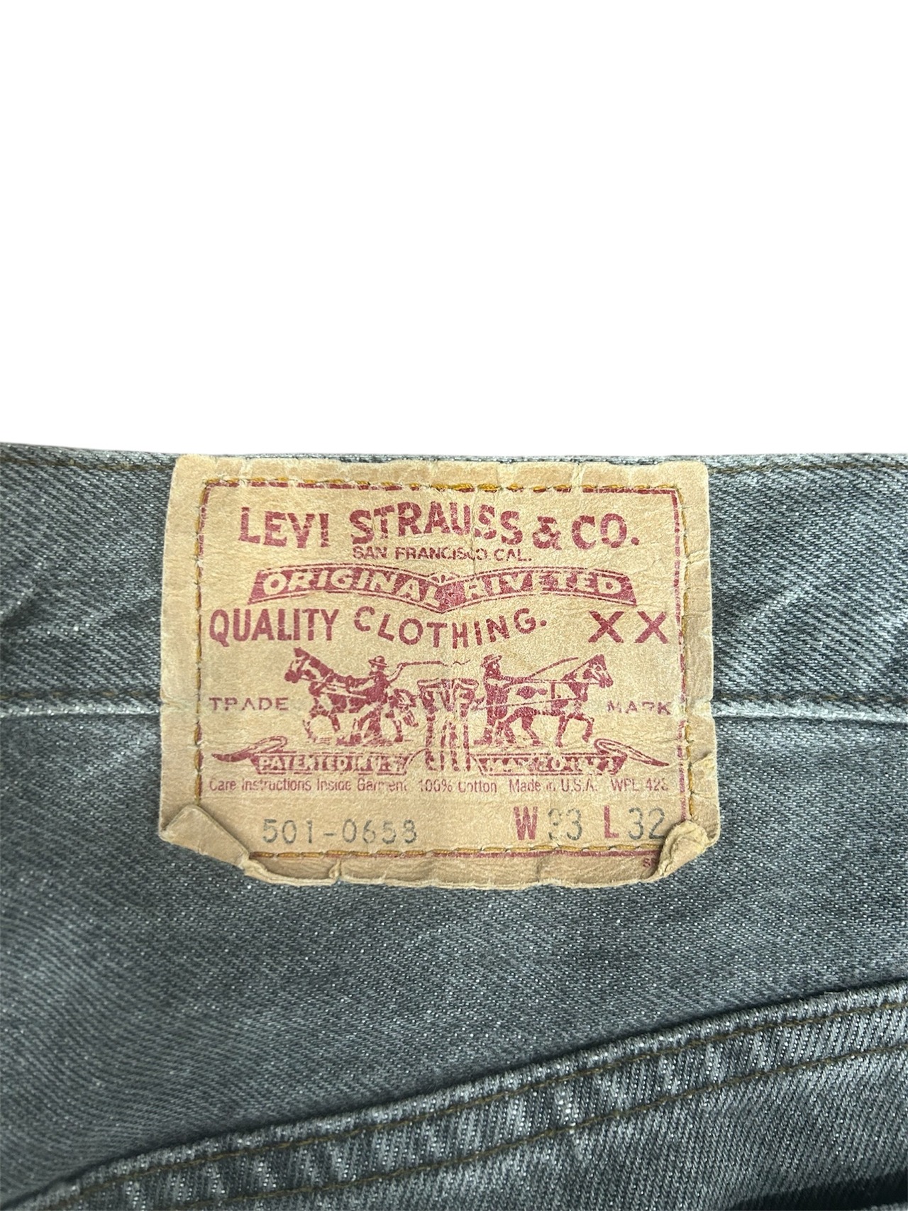 501の定番のストレートカットはカジュアルからフォーマルまで様々なスタイルに合わせやすく長年愛されている商品です。80年代のデザイン、ディテールはヴィンテージファッションのアクセントとして非常に魅力的であり、ブラックデニムはシックな印象を与える逸品となっております。