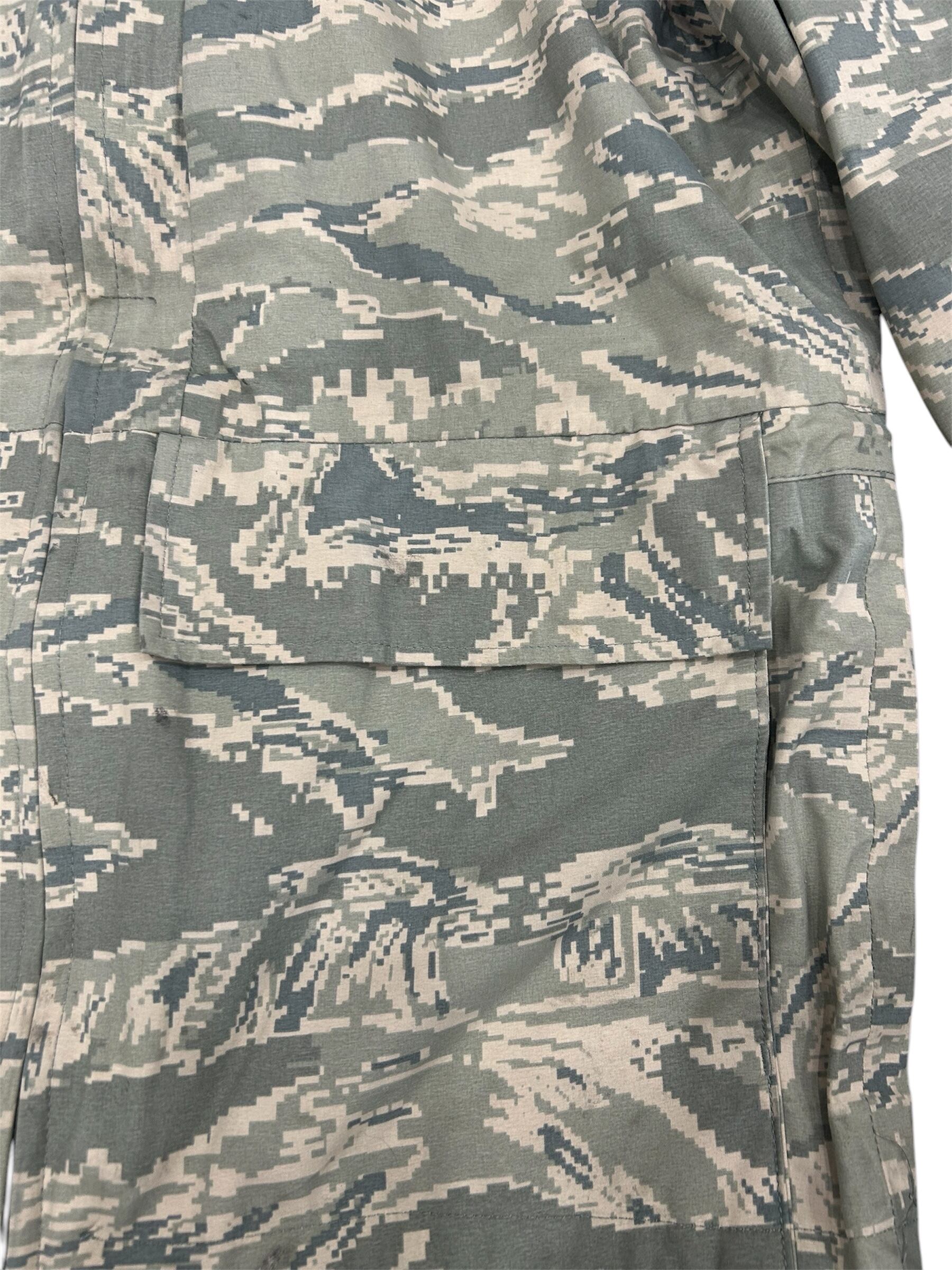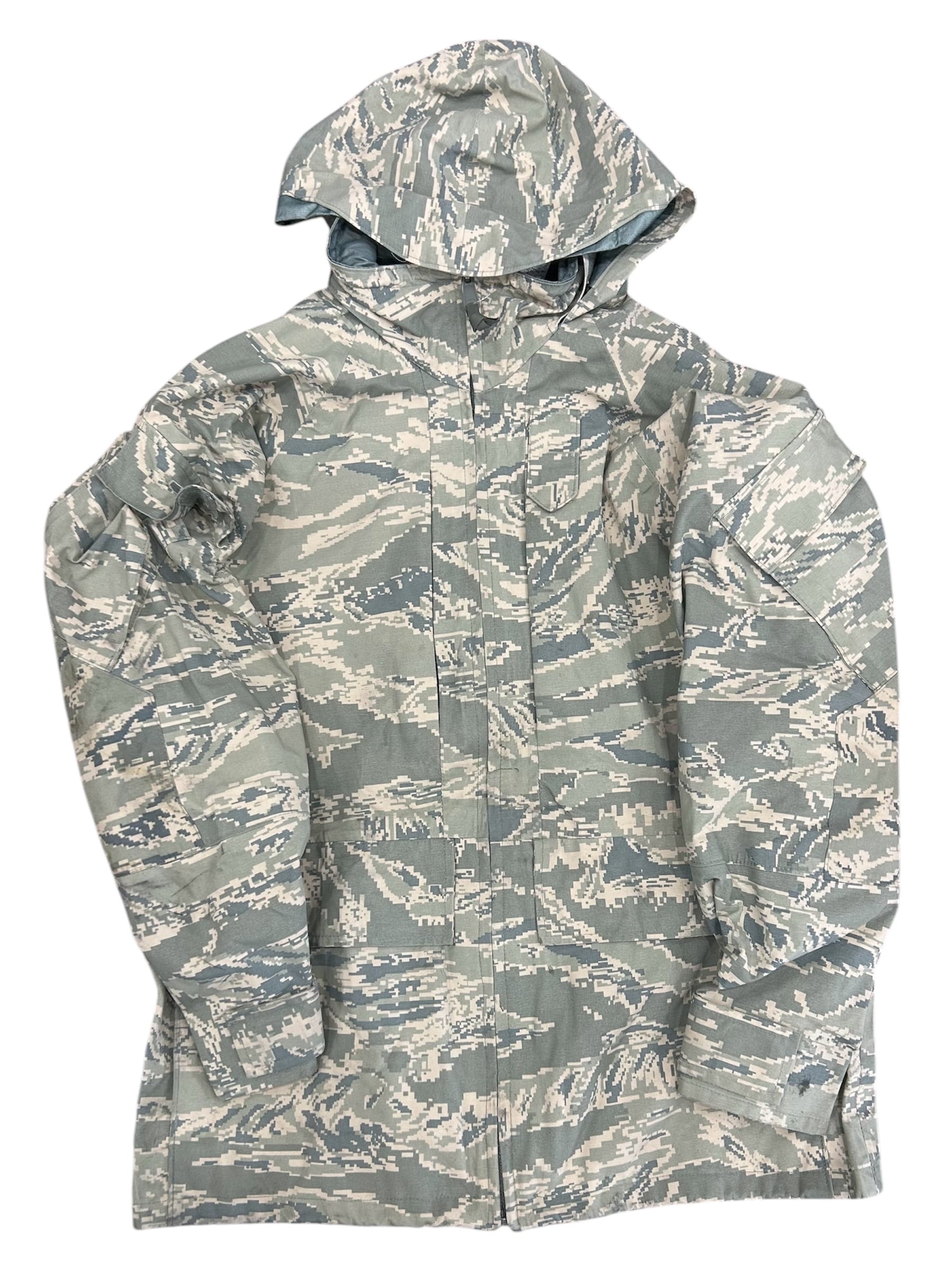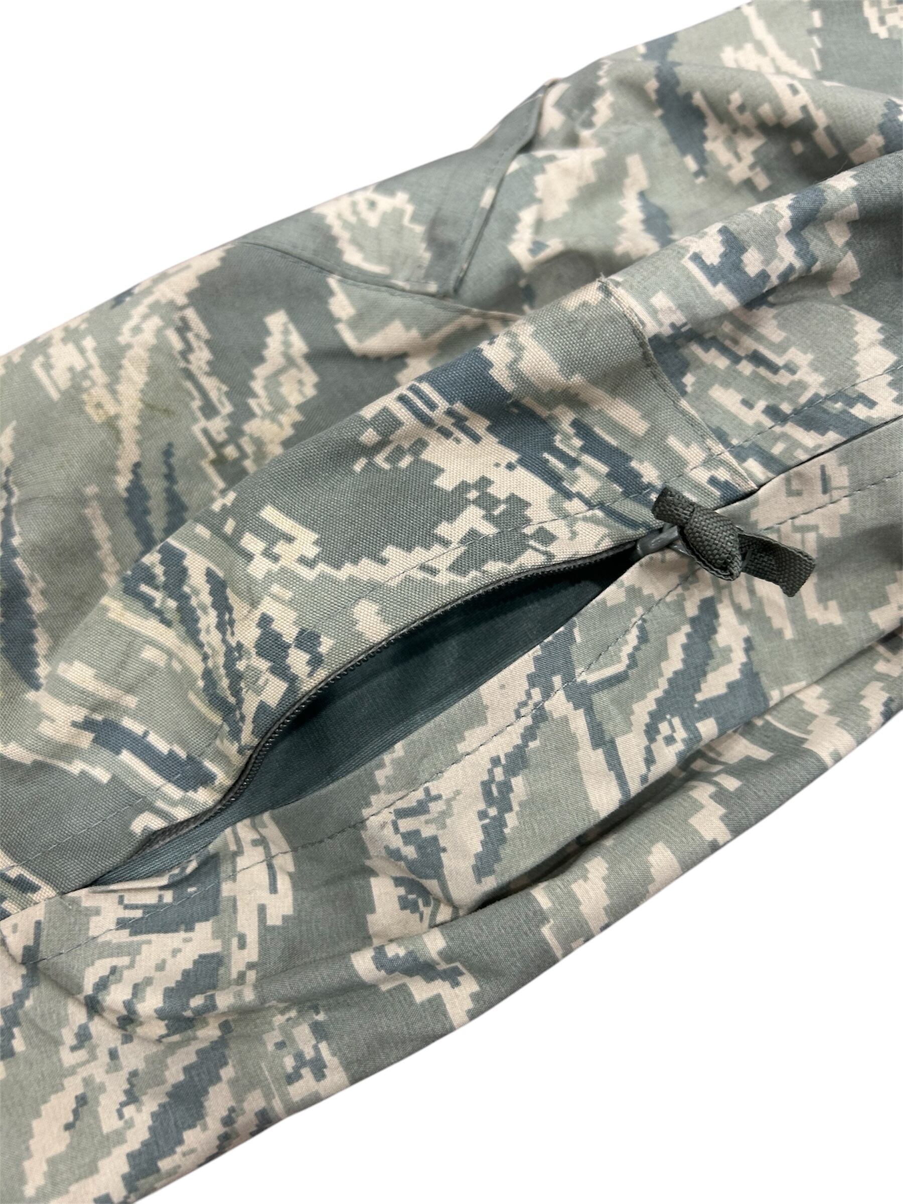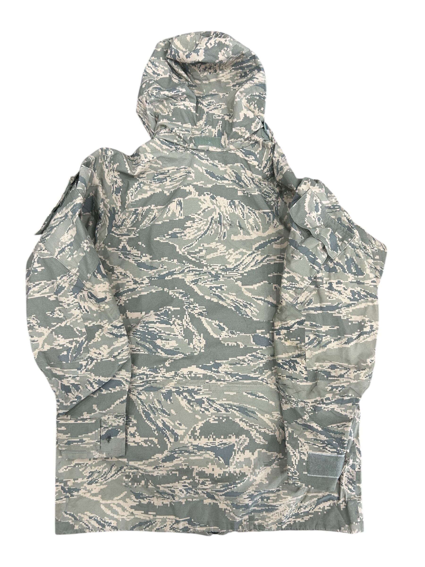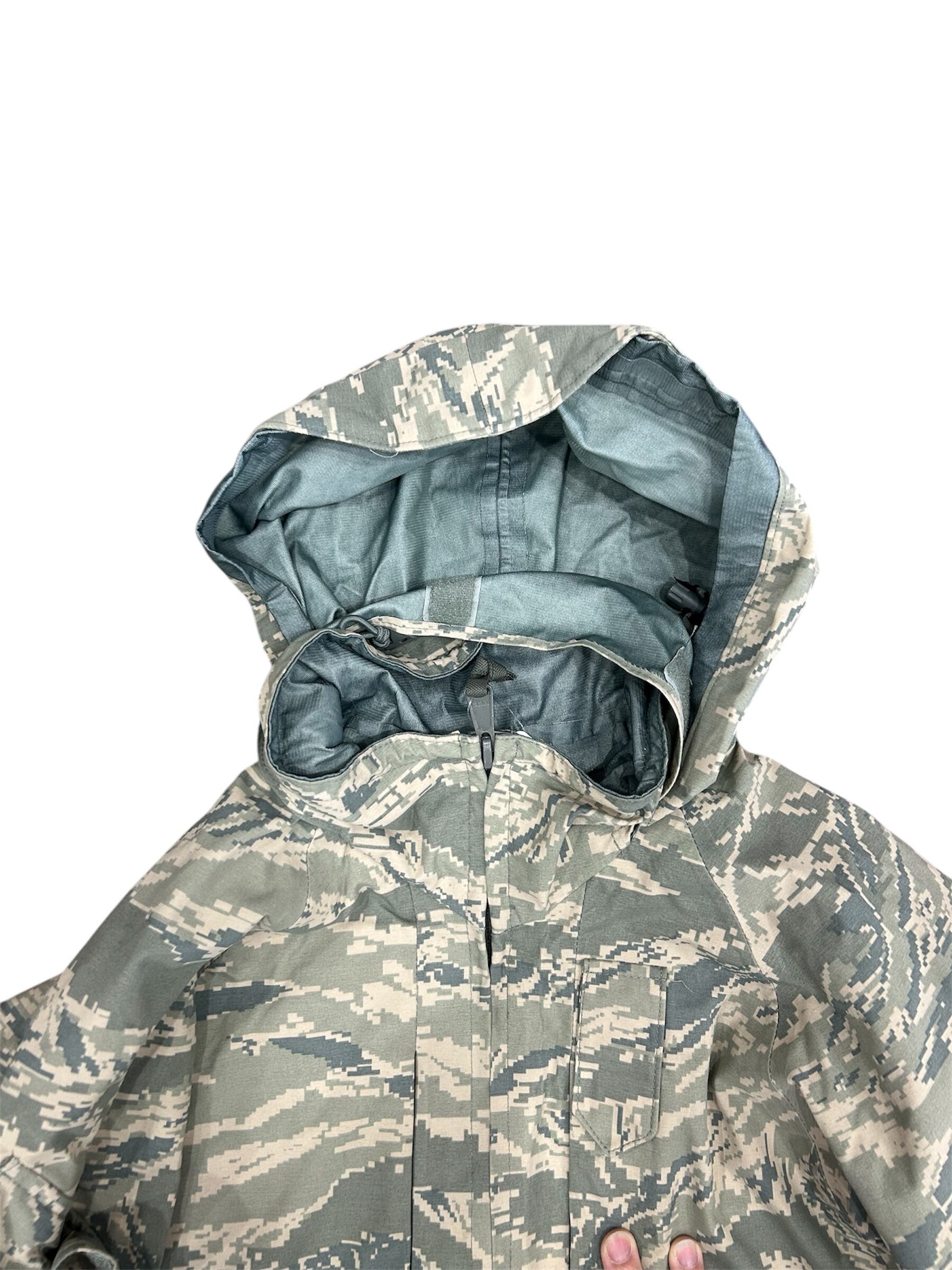 GORE-TEX素材を使用したデジタルタイガーカモ柄の製品は、主に米空軍(USAF)のAPECS(All-Purpose Environmental Clothing System)パーカーとして知られています。このパーカーは、防水・防風・透湿性に優れたGORE-TEX素材を採用し、あらゆる環境下での使用を想定して設計されています。